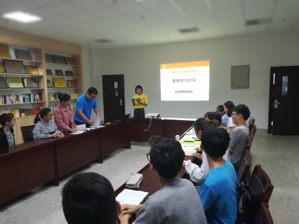 通信工程党支部在花津校区党员活动室召开支部大会,认真学习贯彻《中国共产党纪律处分条例》。支部全体党员参加会议,会议由支部书记米佳佳主持。