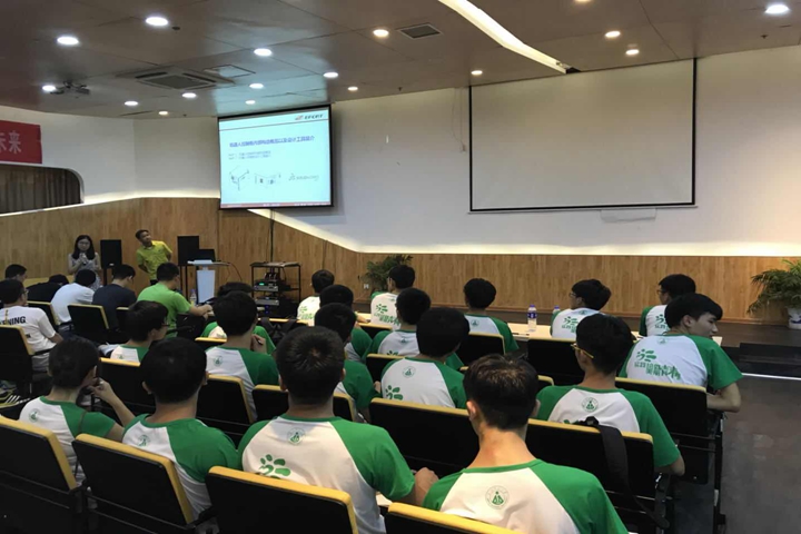 7月17日,他们有幸和哈尔滨工业大学的机器人专业的学长学姐们一起进行实习培训,会上大家都听得十分投入,都在为学习到更多知识而努力着,在会上他们了解了机器人控制柜内部构造概况以及机器人控制柜设计工具简介,虽然他们才大一,这些内容对于他们来说晦涩难懂,但是大家都打起十二分精神聚精会神的听讲并提出自己的疑问与见解,收获颇丰。经过这两天的实践活动,有效的帮助在校大学生开阔了视野,增长了见识,在实践中提升自我,收获了成长,并且对他们的未来也有了更加清楚的认识,对后期的学习更加有针对性。