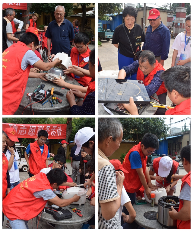 维修期间,有一位老大爷,拿着一个损坏的电饭煲过来维修,并十分好奇同学们是怎么修理有问题的电器,他就站在旁边看着小分队成员们修理,并不时地与小分队成员进行讨论。当老爷爷累的时候,小分队成员也赶紧搬来椅子让老爷爷坐下。最后,老爷爷的电器修好了,他对同学们的义务维修活动十分感激,称赞协会义务维修活动很有意义,并夸奖了同学们的雷锋精神,并希望义务维修小分队能够常来。还有一对夫妇,他们在旁边看着同学们维修,还一直提醒我们要小心点,别伤到自己,令学生感动,也让学生真正体会这次义务维修的内在意义。此次维修还有小区里的会维修电器的叔叔帮助同学们一起,还告诉同学们一些基本的用电常识,让同学们以后在学校、家里用电时都把安全放在第一位。时间很快到了中午,活动也已经接近尾声了,可是还有一些电器并没有修理完成,小分队成员坚持将电器修理好之后,才结束了此次活动。