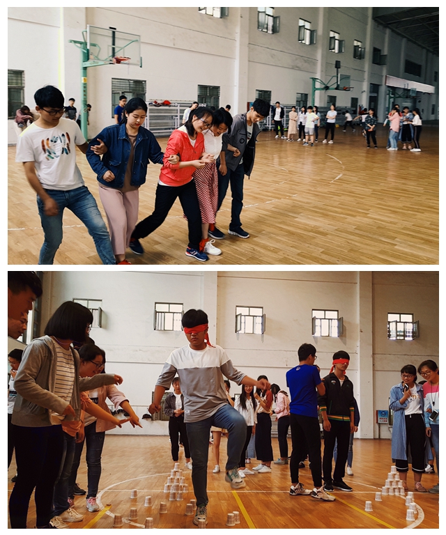 活动伊始,学生们激情昂扬,两个专业随机组成10支队伍。萝卜蹲,仙人指路,装模作样等各类小游戏点燃全场,让两个专业的同学快速熟稔起来。“装模作样”扣人心弦,紧张激烈,融知识性、趣味性于一体。随着小游戏活动的结束,来到了团体活动,首先是拔河比赛。在班级班委组织下,学生有序站队,团结一致,全场沸腾,展示了师大学子拼搏进取,不言放弃的风采。