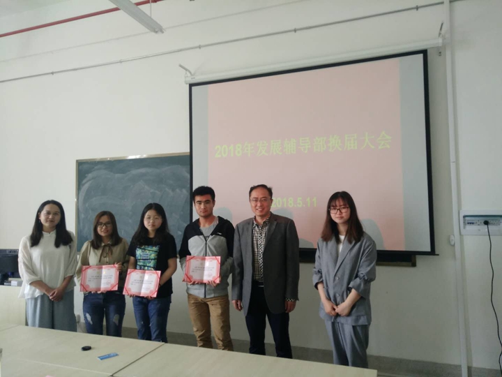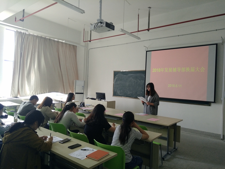 2018年发展辅导部干部换届大会于物理楼535成功举办。院党委副书记吴长义,辅导员聂余、秦瑾琼以及全体发展辅导部成员共同出席了会议。此次大会由秦瑾琼老师主持。