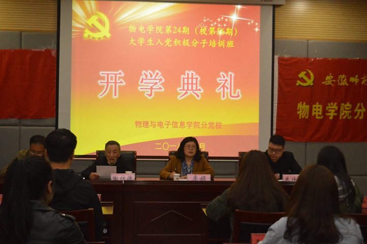 开班典礼在庄严肃穆的国歌声中拉开序幕,院党委书记李娟开班致词。讲话中,李书记首先代表学院党委对参加本期党校培训的学员表示热烈欢迎和衷心祝贺,其次她指出党校是入党积极分子政治理论学习的一个重要阵地,并就我们怎样才能成为适应新时机要求的优秀人才,既有见地和正确的政治场面,又有世界眼光、创新精神的问题作了回答,关键是要不断增强继续学习,终身学习的自觉心,努力打好为党和人民事业建功立业的思想根基和政治功底。接着李书记对培训班学员提出了几点要求:一要倍加珍惜党校的学习机会;二要自觉遵守党校纪律;三要充分发挥模范带头作用。入党积极分子不仅要成为思想认识和政治进步上的模范,更要成为学习上的标兵。把自己培养和锻炼为既有稳固的科学文化知识、高深的专业造诣、精湛的技术水平,又有较高的政治素养的党员。