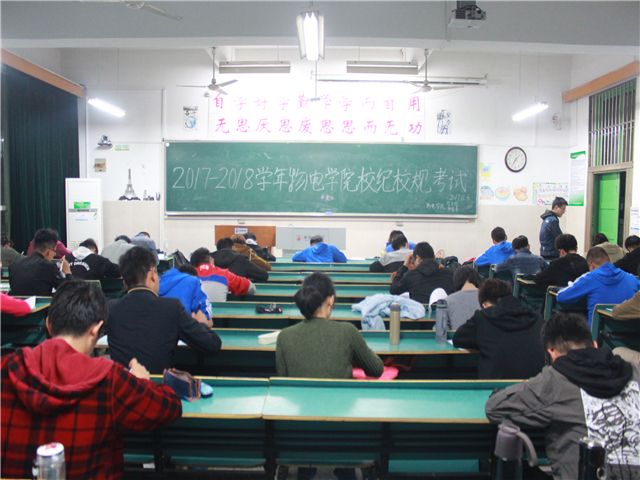 在行知楼组织了2017-2018学年校纪校规考试。此次考试由院学生会负责监考及试卷批改工作,全院新生参加了这次考试。