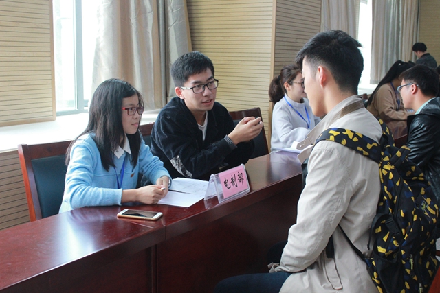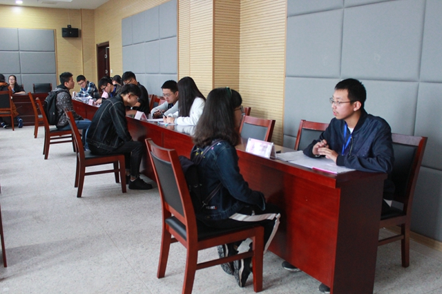 中午,电协工作人员来到面试现场准备时,就看见同学们早早地来到了会场等待。等热情于竞选理事的同学们找到各自面试部门后,都受到了工作人员的亲切问候。