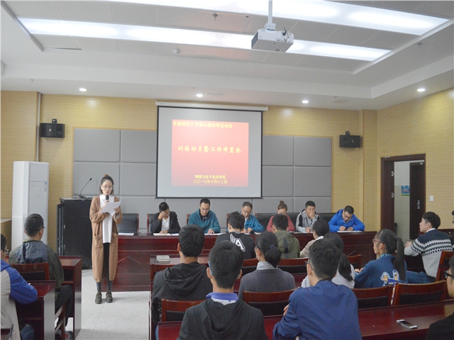 在物化大楼335报告厅举行了第46届秋季运动会训练动员暨工作布置大会。学院党委副书记吴长义、团委书记米佳佳、院团委副书记宋凤楼、17级新生辅导员,学生会主席团成员、各部门部长,全体教练员和运动员出席了此次会议。此次会议由宋凤楼主持。