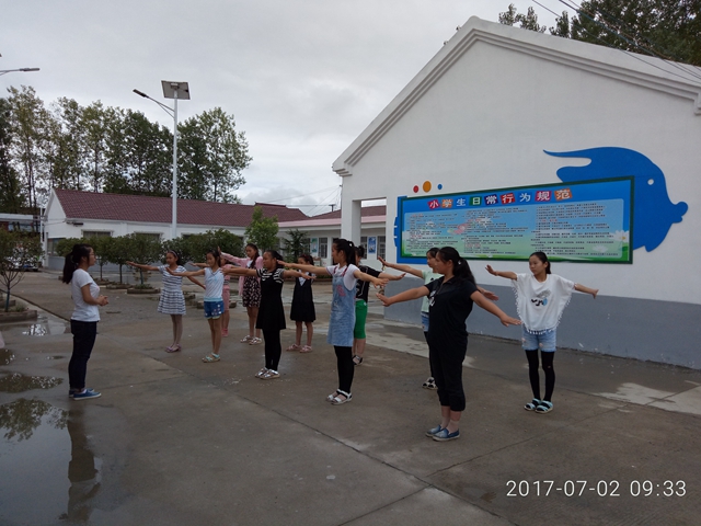 今天上课的老师有了昨天的经验后,上课似乎比昨天更轻松许多。起初大家都在担心着漫长的45分钟课上不完,今天就已经应付自如。上午,莫迎春老师继续带六年级同学在丰富的图形世界里遨游,黑板上一个个图形可见老师的用心啊!段研老师也继续给五年级的同学讲述圆的知识点。长达45分钟的课间操时间老师们也没闲着,有老师分别教男女同学武术和健美操,大家学得可积极呢!结束上午课程后,老师们也都回家享受着一顿丰富的午餐,然后美美的睡上一觉。下午的复习课则是带大家复习和巩固学过的内容,同学们还是很配合我们这些小老师,听得还是很认真的。之后就是同学们期待的活动课了,今天进行的是室内的“你画我猜”游戏。也是对同学们绘画技能的一种培养,游戏中列举的词语也有助于以后大家对它的理解和认识。
