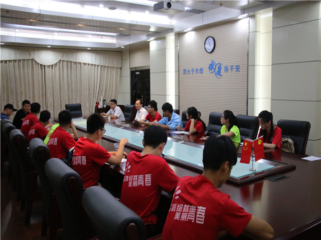赴蚌埠四十一所实践团队指导老师张杰前来慰问实践团队全体成员,同时检验实践三天以来的实践成果。依爱消防电子有限责任公司总经理及部门主管接待了指导老师,并且指导老师、公司领导和全体队员举行了座谈会。
