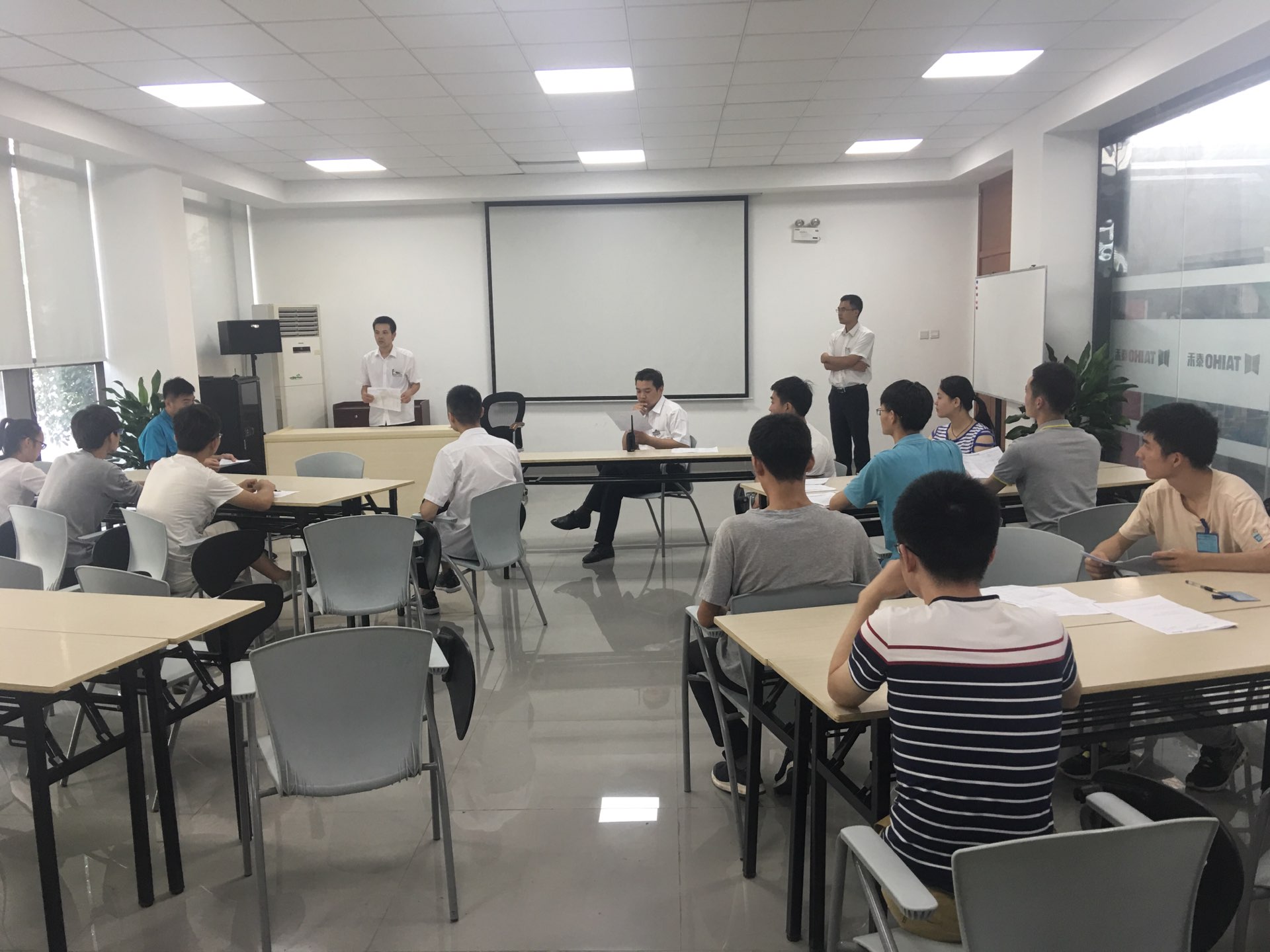 下午4:00左右,在经过长达3个多小时的车程后,实践团队成功抵达实践地点。随着实践团队负责人张芙舟对队员进行宿舍的入住,领取工作牌,自己其他相关事宜的安排。实践负责人和队员们召开第一次工作会议。会议上,为了保障本次实践的顺利进行,确保活动质量,队员们在会议上表现热烈,积极参与讨论。包括实践安全、实习参观项目、工作时间安排等许多涉及到实践核心的关键问题都被列为会议讨论项目,同时实践负责人张芙舟也强调指出:希望大家及时熟悉公司生产和工作环境,以及各项规章制度,积极向技术人员学习,养出吃苦耐劳的精神,努力做到理论与实践相结合,更好的培养自己的社会实践意识,最后祝愿队员们在这段时间内能有所收获和感悟。会议中,队员们根据公司有关规定分发实践活动安排表,填写个人信息和实践安全问题责任书,真正做到责任有人担,安全有保障。