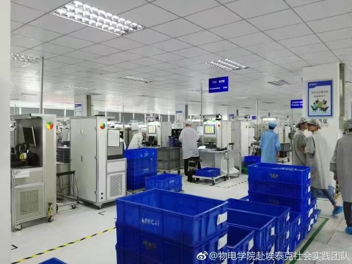 活动开始,实践队员到达埃泰克汽车电子有限公司,在埃泰克领导阶层袁经理的带领下,队员们来到实习部门生产部,队员们在生产部门主管的指导下做好进入生产车间的准备。在车间,队员们参观了生产流水线,深切体会到了工人的辛苦也感受到了科技的发达。