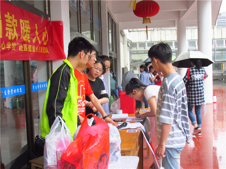 领导教师,集体捐赠玩具的各位15物理同学,冒雨而来的将钱放进捐款箱的小姑娘,支教团队的同学对捐赠者的信息进行了详细的登记,对捐赠者的问题作出了细致的解答。爱心零距离,暖情传天下,这次募捐活动不仅仅体现了当代大学生的人文关怀和社会责任,也显示出同学们对西藏孩子沉甸甸的情谊。本次活动共募款3000多元,玩具数十个。希望这些微薄的力量可以在这个炎热的夏季给西藏的孩子们更多的清凉。