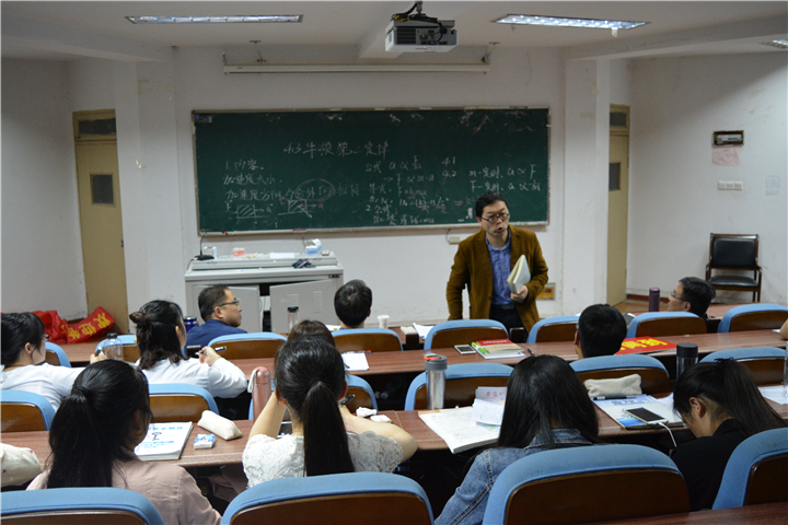 本次竞赛分为三个阶梯阵队,分别是14级,15级,16级物理学的本科生,共19人。此次比赛的范围是密度、压强(以上为初中内容);牛顿第二定律、超重与失重、动能定理(以上为高中内容)。比赛选手在其中选择一个选题进行模拟授课,时间6到8分钟。首先比赛的是14级物理学的同学。2014级的傅振兴同学用清晰流畅的语言讲授动能定理,赢得阵阵好评。2015级的刘辉同学声情并茂地将授初中物理压强内容,并且用问题一步步的引导学生进入物理情景中去。2016级的周佳康同学用自己丰富的情感和幽默的语言,感染在座每一个人的眼球。比赛结束,王长江老师首先进行点评。王老师从教师的语言、语气,板书,教学逻辑这四个方面对同学们的授课进行评价。王老师指出,同学们在教学过程中语速应放慢,讲授应有节奏,板书的标题应做到规范。随后汪老师进行补充点评,汪老师从竞赛的角度为同学们进行评价。汪老师指出同学们的教学目标要做到清晰明确,教学观念要体现学生的主体性,用一系列的问题,引导学生逐步思考,并且教师在教授时要加强与学生的互动,调动学生的积极性。