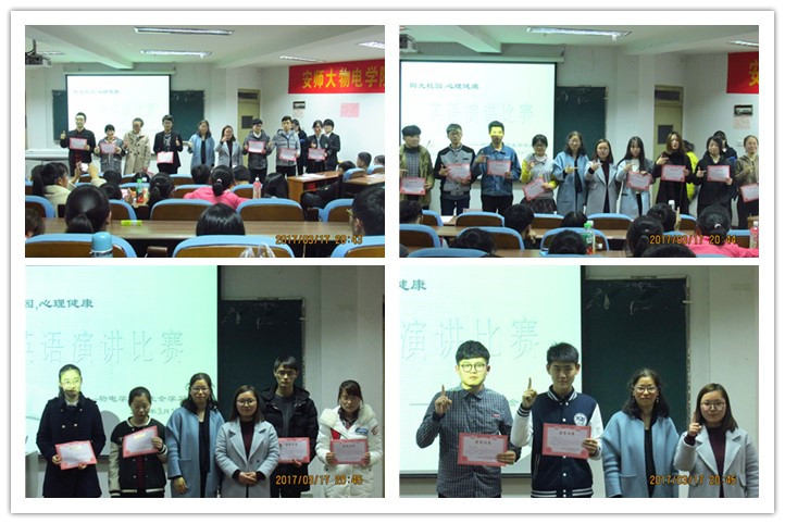 学生会学习部主办的“阳光校园,心理健康”英语演讲比赛在综合楼三楼会议室举行。16级英语老师刘丽,芜湖四校英语读吧创始人代兴莉担任本次比赛评委。