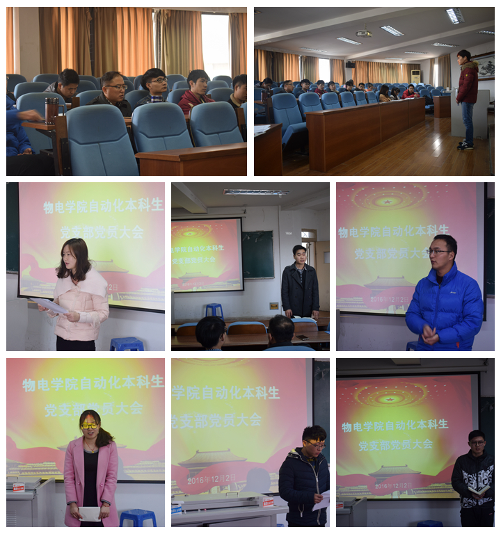 自动化本科生党支部召开了党员大会,本次大会主要是讨论接收将盛雨婷等六位同学预备党员工作。院党委副书记吴长义、14自动化辅导员宋凤楼、15自动化辅导员李亚列席本次会议,参加大会的还有自动化本科生党支部全体成员。