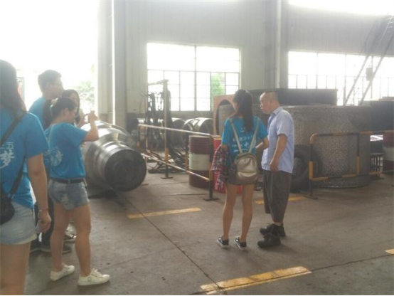 自由活动时队员们还在有些工人工作的区域与他们进行交谈,了解了实际操作的基本技能。在机床附近看见巨大的实心圆轴,同学们油然而生出一种亲切感,与金工实习做的小零件有异曲同工之处。师傅又给队员们讲解了需要做的工件的图纸,虽然学过工程制图,但在实际运用起来还是很吃力。这更加确定了同学们要进行实践操作的决心。