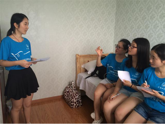 8月9日,活动第一天上午,在团队队长王琪瑞同学的主持下召开了简短的活动前动员会议,由队长安排各项任务并对队员提出要求和希望,安全员负责提醒队员安全问题,其他队员各司其职。
