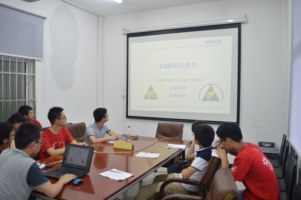 当天下午,张部长给队员们进行了关于埃泰克公司所主要进行研究方向ESD的培训,并在培训后对队员们进行了考核。为明天上生产线操作打下基础。在考核后,队员们返回生产线继续参观实习。