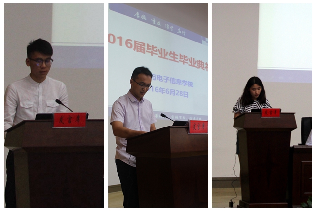 党政领导、各专业负责人、中心主任、教师代表、全体辅导员以及2016届全体毕业生参加了典礼。典礼由院党委书记李娟主持。