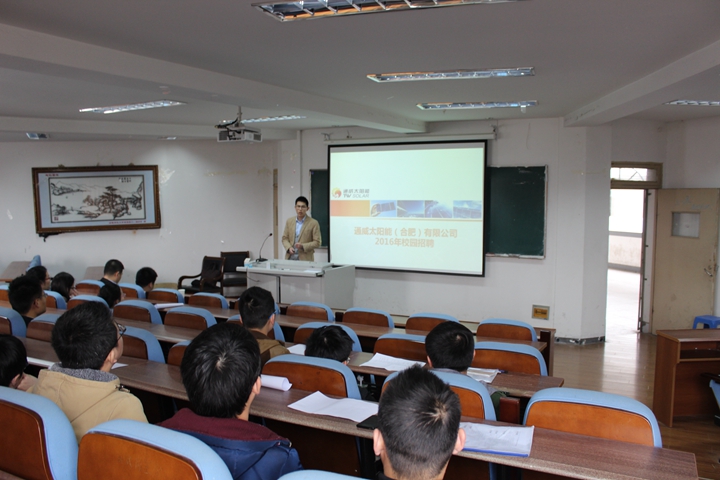 招聘会上,招聘单位通过播放宣传片、PPT展示、面对面交流的方式向同学们介绍公司的概况、职业发展方向以及人员需求。紧接着介绍了通威太阳能(合肥)有限公司的薪酬待遇、面试流程、后期培训等情况。招聘会期间,现场气氛活跃,免费色情片