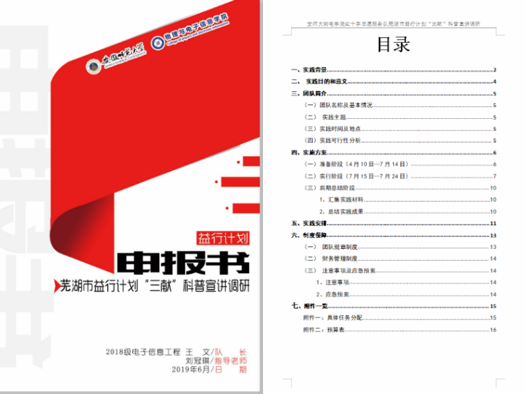 前期准备全面细致,让后续活动“益”起来。学院2018级电子信息工程专业的学子们,与芜湖市红十字会取得联系,在认真了解目前芜湖市献血现状和存在的困境之后,对志愿服务的内容和形式进行创新,在总结服务对以往的工作经验基础上,结合芜湖市实际需求,开展“三献”知识宣讲、“三献”科普课堂,“三献”问卷调研的“三线”志愿服务模式。团队成员撰写二十余页、近一万字的芜湖市益行计划“三献”科普宣讲调研申报书,形成宣讲文稿10余份,特色科普课件2份,并配备校内指导教师1名,校外指导医师1名。