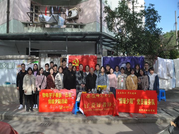 在主题教育过程中组织部分学生党员来到安师大凤凰山社区,开展“情暖夕阳”志愿服务活动。