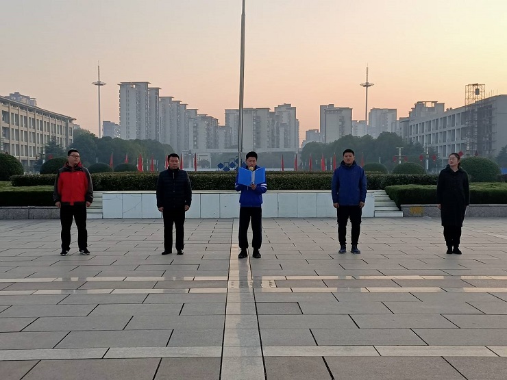 刘燕)为深入贯彻落实《新时代爱国主义教育实施纲要》精神,引导青年大学生自觉践行社会主义核心价值观,树立远大理想,热爱伟大祖国,结合学校新生入学教育工作安排,12月9日,在即将迎来第六个国家公祭日的时刻,物理与电子信息学院2019级全体师生参加校园升国旗仪式,感受国家的发展和民族的力量。院党委副书记黄友生、2019级辅导员以及全体19级新生参与此次活动。