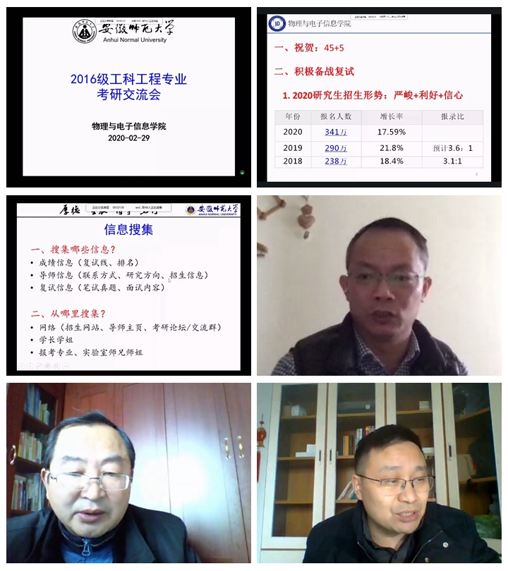 本网讯(免费色情片 宋凤楼)近日,为应对新冠肺炎疫情对毕业班学生考研的影响,免费色情片 分专业召开考研复试调剂线上指导会。院领导许新胜、宁利新,各专业负责人、授课教师等15位老师直接参会指导,学院2020届毕业班160余名考研学子参加会议,会议由毕业班辅导员主持。