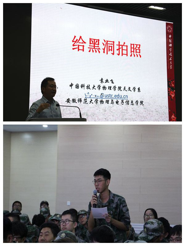 袁教授从什么是黑洞、黑洞在哪儿、怎么找黑洞、为什么拍照、怎么拍黑洞以及给黑洞拍照的意义六个方面展开了详细解读。他还结合天体物理发展的历史,从牛顿经典力学、开普勒三定律一直讲到爱因斯坦相对论,通过通俗易懂的语言给新生带来了一场思想与知识的盛宴,激发了同学们的探索精神和奋斗热情。报告结束后,新生们就黑洞研究及物理学习等内容与袁业飞进行了现场交流。