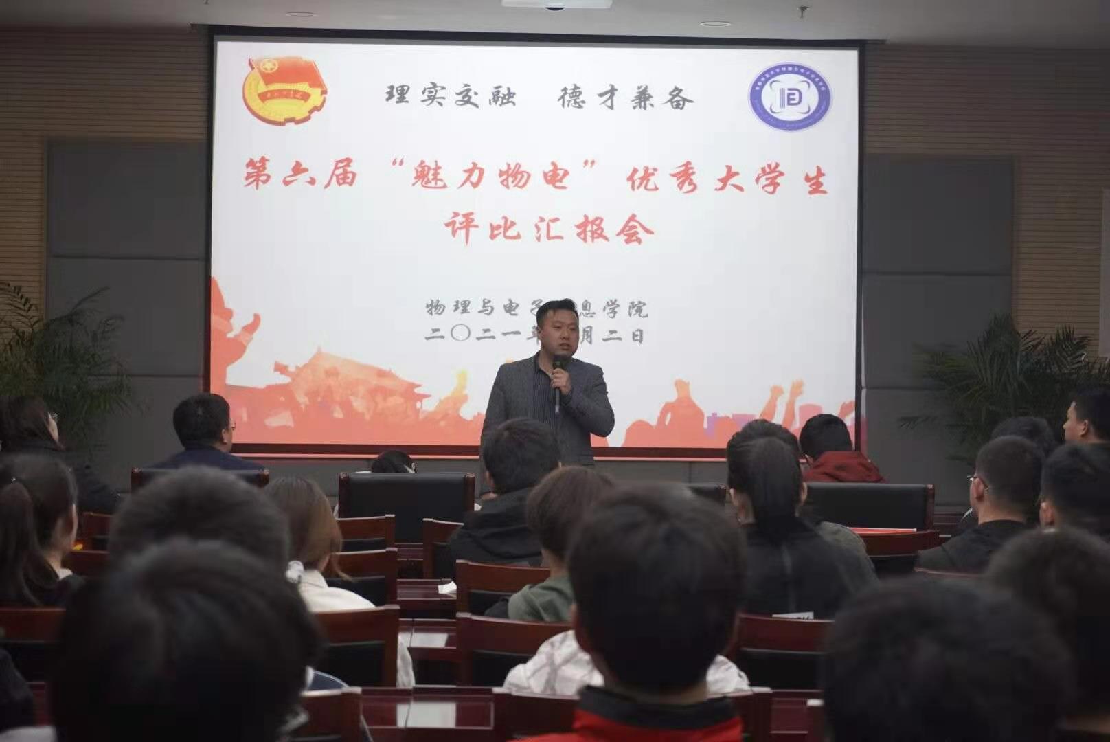 举办第六届“魅力物电”优秀大学生线上评选展示活动。院党委副书记黄友生、本科生全体专兼职辅导员担任评委,学院2019、2020级学生代表参会。汇报会由院团委组织委员丁淑颖主持。