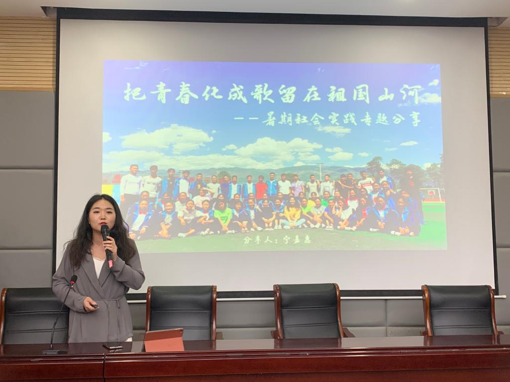 今年将继续以基地建设为依托、以实践团队为载体、以学生需求为导向、以服务社会为宗旨开展暑期社会实践。张爱清宣读了校、院级重点团队名单。2020年优秀实践队员代表、院团委学生副书记王竹林分享她的实践故事,2021年实践队员代表吴涛作表态发言。