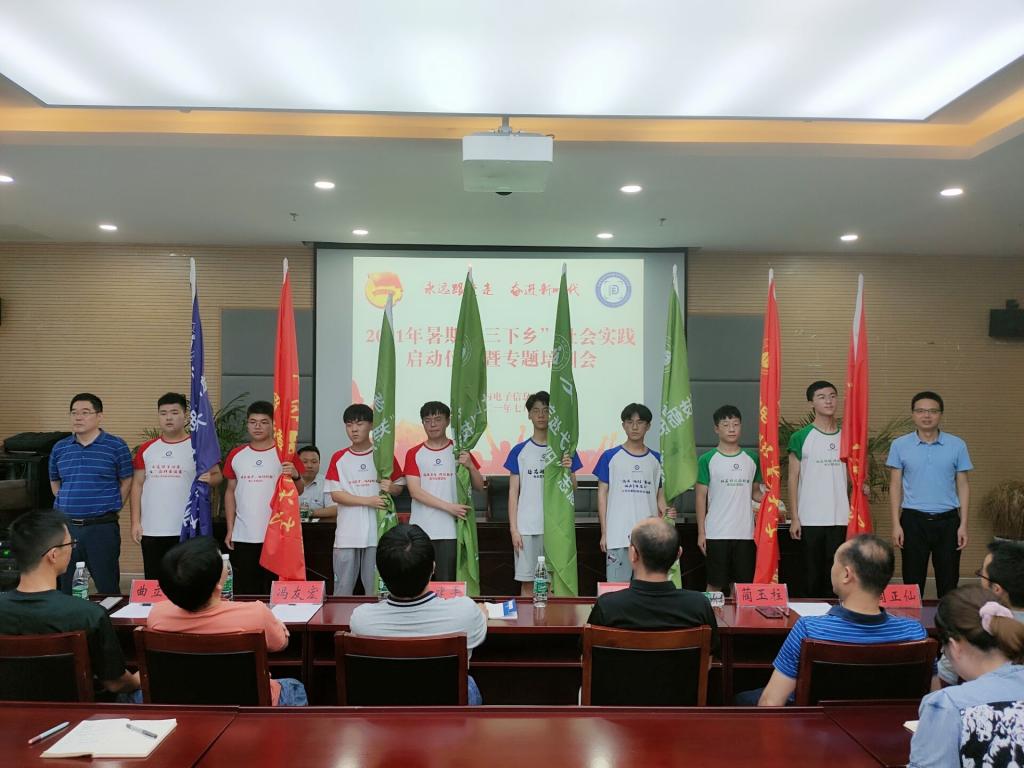 人才培养方案既定的重要内容。勉励全体同学要坚定理想信念,做矢志奋斗的新青年;珍惜韶华时光,做求真好学的新青年;发扬吃苦精神,做乐于奉献的新青年;强化安全意识,做遵纪守法的新青年。授旗仪式环节,汪凯、郑贤锋为8支校级重点团队授旗,高艳杰、张爱清为17支院级重点团队授旗。在2021社会实践代表宣灵捷带领下,所有与会同学光荣宣誓,出征仪式在团歌中结束。