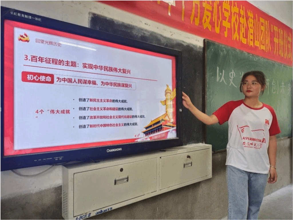 各支教实践团队积极开展“党史青传”微宣讲,为乡村孩子们树立坚定的理想信念,做到知史爱党爱国,知史明智担责,不啻微芒,用温暖点燃留守儿童梦的炬火。
