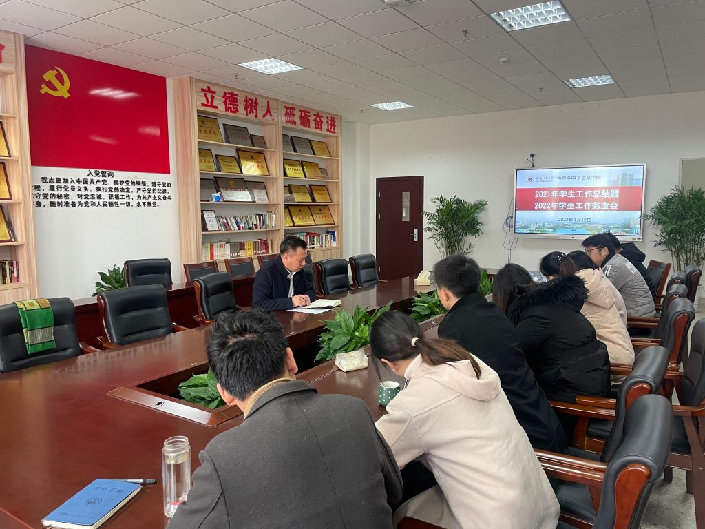 在物理楼308会议室召开2021年学生工作总结暨2022年学生工作务虚会,总结回顾2021年度学生工作,谋划部署新学年工作。全体专兼职辅导员参加会议,会议由学院党委副书记黄友生主持。