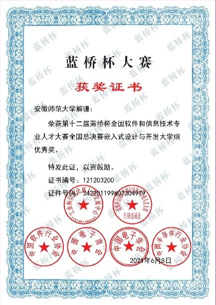 此外,解谦还曾获得第十五届全国大学生智能汽车竞赛省级二等奖、2021年安徽省机器人大赛省级二等奖、2019年全国大学生电子设计大赛省级奖项以及第五届“百度”深度学习训练营优秀结业证书等各类奖项20余次。