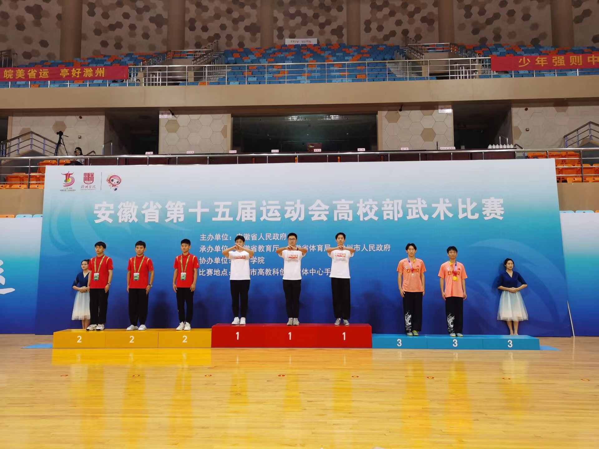 2021级电子信息类专业戎天琦在安徽省第十五届高校部武术比赛中获得男子甲组对练第一名、男子甲组剑术第五名、男子甲组长拳第六名的优异成绩。