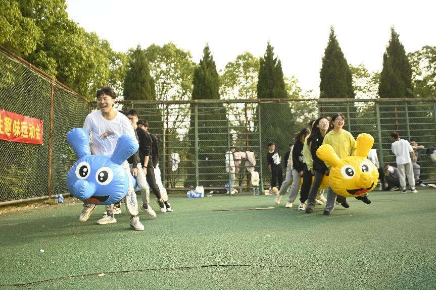 比赛分为单人项目与团队项目,同学们根据兴趣现场报名。单人项目包括踢毽子、自行车慢骑、公鸡下蛋、摸石过河等,其中公鸡下蛋是每个参赛选手背后绑了一个装了小球的盒子,选手需要不断摇晃身体来晃掉盒子中的小球,摸石过河是每位选手有三块“垫脚石”,需要通过不断调整“垫脚石”的位置达到脚不接触地面到达对岸,充满趣味性与挑战性,同学们纷纷报名“互相切磋”。团队项目包括同心鼓、袋鼠运瓜、四人五足、竞速毛毛虫等,都是需要同学们相互之间配合默契才能取得好的成绩,极大地拉近了同队同学之间的距离,经过激烈角逐,每个项目最终各选出了三位获奖的同学和团体,其中胡琴芳、季玉辉、徐鹏程、朱勇等同学荣获单人赛一等奖,徐伟萍、强娟重、顾荷先、李东东等同学代表的队伍荣获团队赛一等奖。除获奖同学外,每位参与活动的同学都可以得到参赛礼品,并参与幸运抽奖。比赛现场氛围热烈,同学们兴致高涨,收获满满。