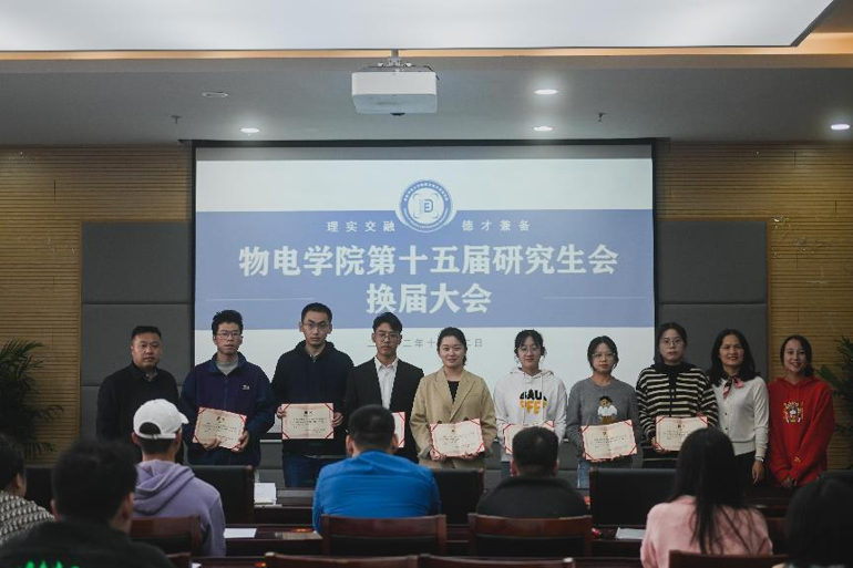 研究生会换届大会在物电楼304会议室举行。学院党委副书记黄友生、学院团委书记刘冠琪、学院研究生秘书王亚青以及免费色情片
