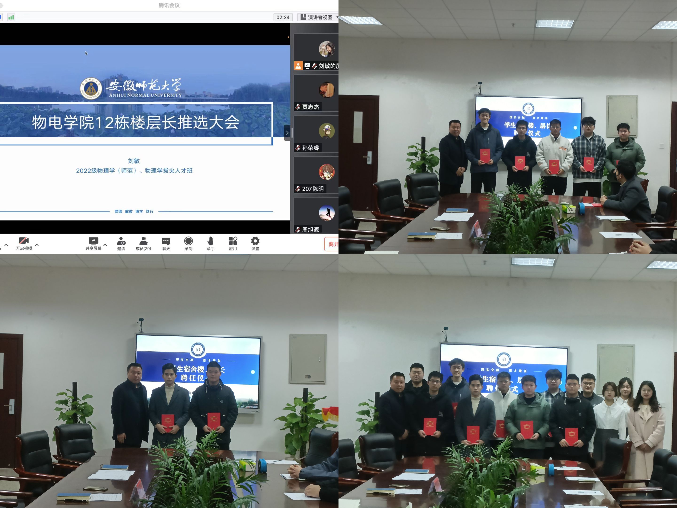 相关辅导员利用班会在相应学生中积极宣传学生宿舍“一站式社区”试点建设工作。组织开展楼、层长公开选聘,择优聘任了学生宿舍楼楼、层长。3月3日中午,学院举办学生宿舍楼楼、层长聘任仪式,学院分管领导为受聘任的楼、层长颁发聘书。