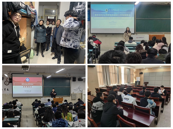 高度重视学生思想情况调研工作,学院、学生组织、班级等多渠道调研掌握学生思想情况,通过“五特”学生跟进式服务、教师深入课堂听课、辅导员实施每周“四进”工作制度、主题班会、一站式学生宿舍社区楼、层长周例会、寝室民主生活会、问卷调查、谈心谈话等多种形式深入了解学生思想、学习和生活状况,通过开展“院领导接访服务日”“教授面对面”“四联系”“学海导航”等特色活动,广泛听取学生意见建议,精准解决诉求,不断提升教育教学管理和服务水平,为学生创造优良的成长成才环境。