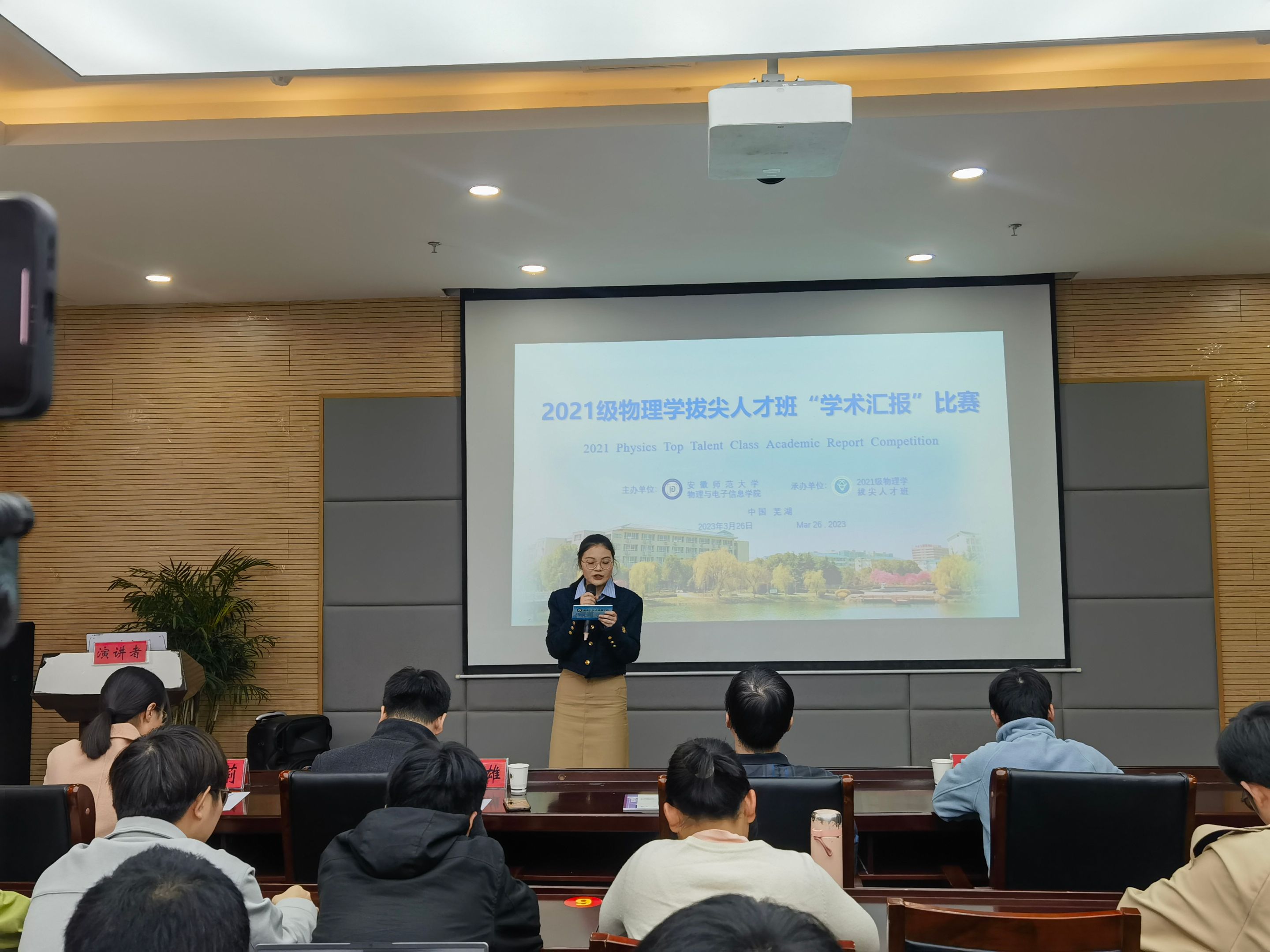 为满足国家基础学科拔尖人才的战略需求,响应学校两大“振兴计划”,培养具有良好科学精神,创新意识和一定的独立获取与应用知识能力的物理学拔尖人才。3月26日下午,第三届物理学拔尖人才班“学术汇报”比赛在物理楼304会议室成功举行,院物理学平台专业老师孙鹿鸣、魏亚雄、汪延志、梁莉、胡长生担任评委。2021和2022级物理(拔尖人才班)全体同学观摩本次比赛。比赛由2021级物理学拔尖班王子悦同学主持。