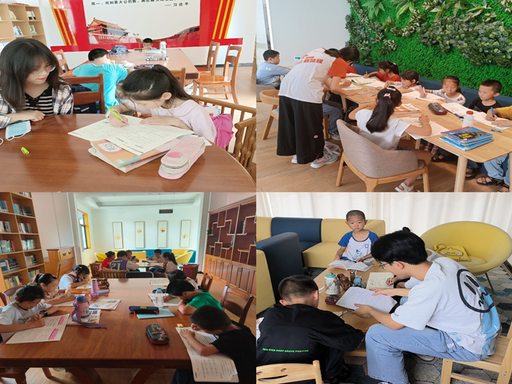 赴枞阳县少儿图书馆“携爱教科行,共赴千方约”千方爱心学校暑期支教团队设置“教学+辅导”的教学模式,分区域对不同年级开展相关教学活动,针对一些基础较差的学生开展一对一辅导教学。