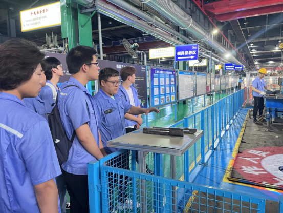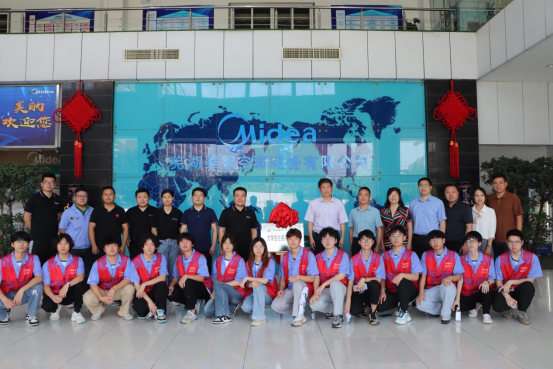 7月9日,安徽师范大学副校长景晓军、校团委书记廖仲明、学院党委书记李娟一行在芜湖美智空调设备有限公司副总经理韩祖金及相关领导的带领下参观了美的芜湖工厂的生产车间,企业领导详细介绍了美的的智能家居及其生产工艺。并且学校领导老师也亲临生产现场观看队员们的项目板报展示同时对同学们的汇报做出了相应点评。