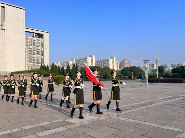 早上7时整,升旗仪式正式开始。国旗护卫队的同学们英姿飒爽,迈着铿锵有力的步伐,护送着鲜艳的五星红旗走向升旗台。伴随着雄壮的国歌,五星红旗冉冉升起,全体师生深怀对祖国的无限热爱和崇高敬意,面向国旗行注目礼。