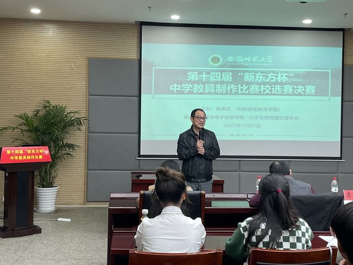 李汪根作动员讲话。他强调,学校正在大力实施“基础教育振兴”和“学科振兴”两大行动计划,着力打造金牌教案、金牌教练、金牌师范生“三金”工程和一批具有国内一流水平的精品核心课程,力争在江淮大地上精心打造一所家乡人民满意的国内一流水平师范大学,开展教具教具制作创新大赛是打造“三金”工程的应有之义。他祝贺进入决赛的20个团队,感谢老师们的悉心指导和承办单位的精心组织;希望同学们能够做到知行合一,在今后的学习和生活中能主动思考、不断创新,切实提升师范生技能。