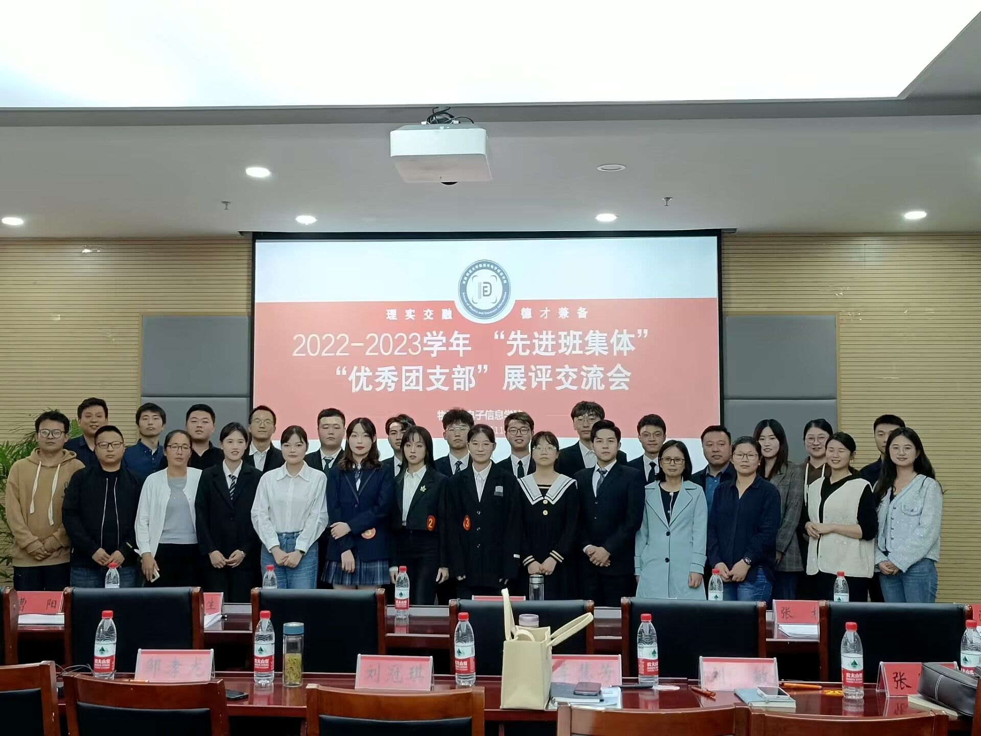 隆重开展2022-2023学年“先进班集体”“优秀团支部”展评交流会。学院党委副书记黄友生、学院教师代表王桂丽、杨凌云、胡长生、张松以及全体专兼职辅导员担任评委,2022级、2023级各专业学生代表到场观摩。