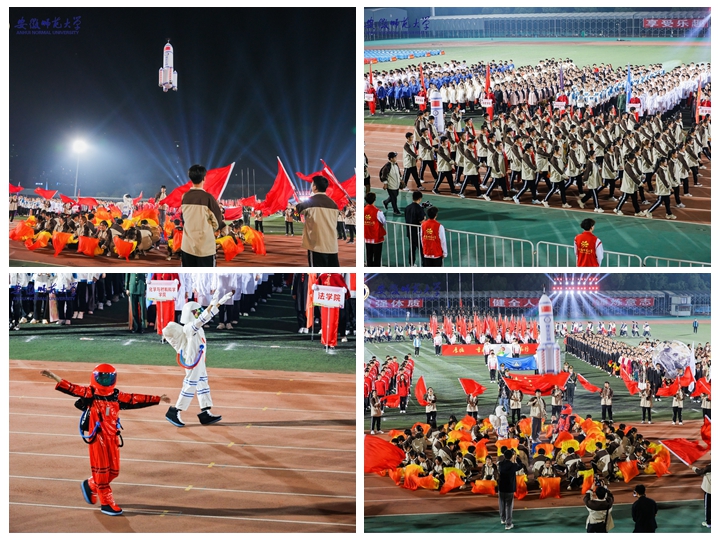 立足专业,展示风采。“科创筑梦,聚变启航;青春赛场,物电最强”,10月18日晚,在校运会开幕式上,学院方阵队步伐有力,精神抖擞,口号嘹亮地入场。学院方阵展示以致敬航天精神为主题,涵盖量子纠缠、四旋翼、电子芯片、火箭等学科元素,组成了极具专业特色的航天火箭方阵,在展示中,成功发射“火箭”模型,致敬航天精神,引起全场观众的阵阵欢呼,并受到主流媒体关注报道。在开幕式最后集体舞表演中,学院排舞队以整齐优美的舞姿演绎《同爱同在》,奏响青春乐章。