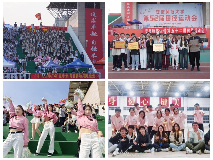 校运无限精彩,物电乘势而来!10月18日至21日,安徽师范大学第52届田径运动会在花津校区体育场顺利举行。学院再获佳绩,获得学生甲组团体总分第一名、男子甲组团体总分第一名(蝉联“七连冠”)、女子甲组团体总分第五名、体质健康测试团体总分第一名、排舞比赛第六名。在运动场上,学院师生精诚团结、超越极限,践行“更高、更快、更强、更团结”的现代奥林匹克精神,充分展现物电师生朝气蓬勃,奋发有为的精神风貌。