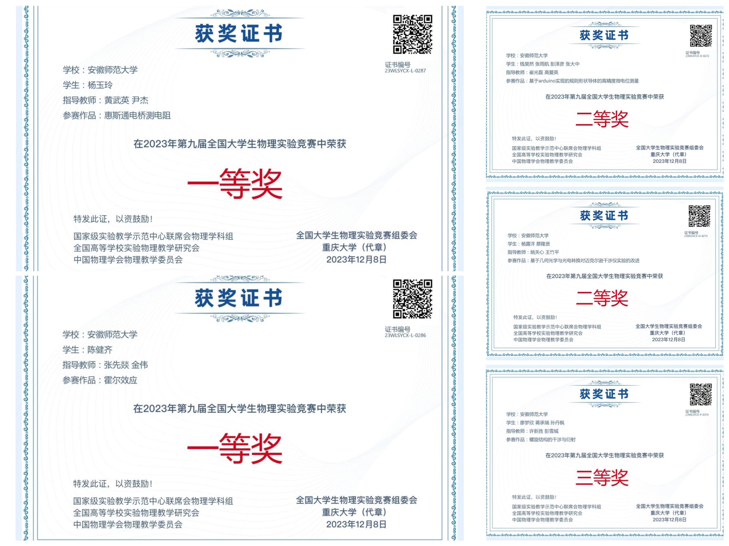 讲课类作品《霍尔效应》(指导老师:张先燚、金伟)和《惠斯通电桥测电阻》(指导老师:黄武英、尹杰)突出重围,均获全国一等奖。另外,免费色情片