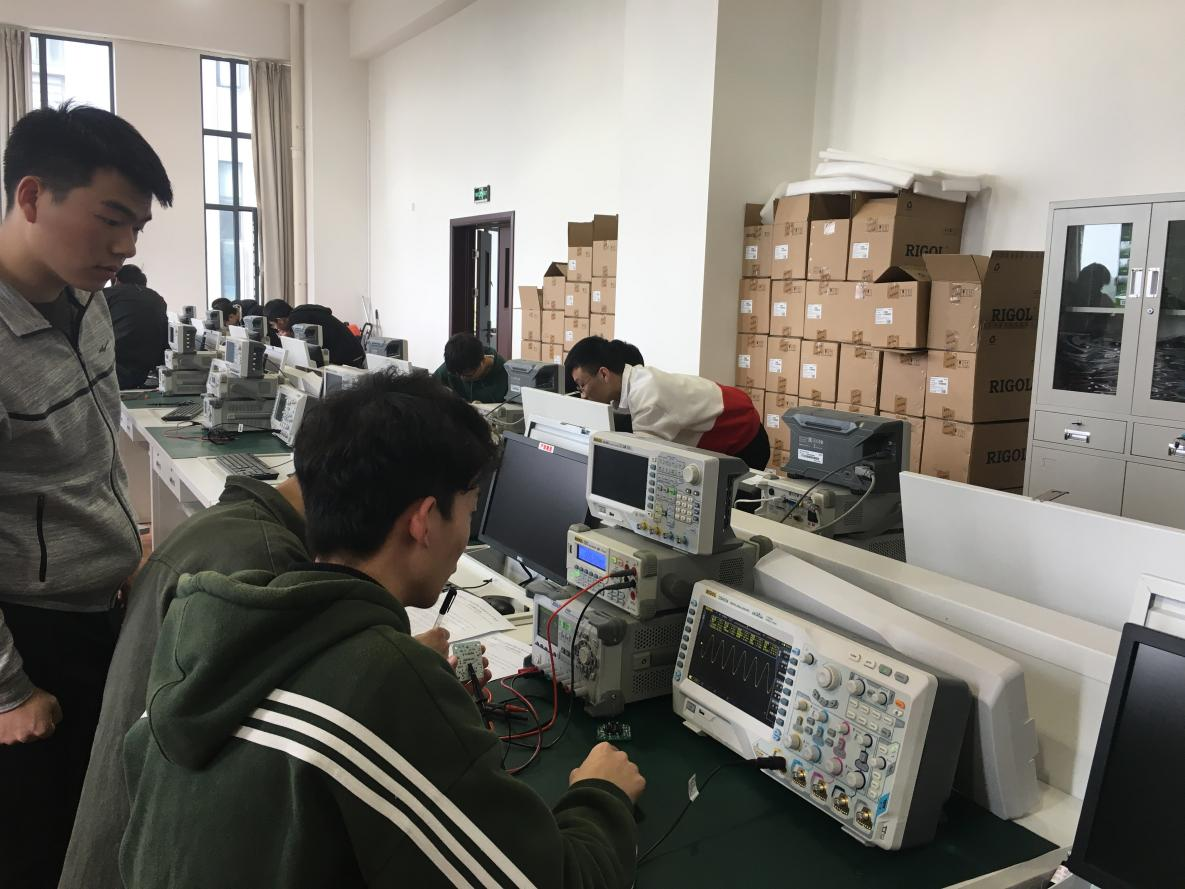 目前,内设金工实训室、课程设计实训室、现代PCB制板实训室、计算机辅助设计实训室、电子装配实训室,毕业实习实训室等。同时,建有材料库、元件库等配套设施。为了体现新工科的教学实践和双创的要求,工科实训中心还内设大学生电子设计训练营,学生在此参与专业学科竞赛、创新创业训练等活动,进一步提升实践、实训水平。