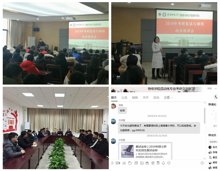 全方位联动指导。朋辈教育走心。大三阶段考研经验交流会,邀请大四考研学生代表进班级分享“最新鲜”考研奋斗历程,帮助备考生有效规避弯路;信息平台走量。学院自17年以来分专业建立考研交流群,邀请往届考研录取的同学与应届有考研意向同学进群,提供线上交流平台进行资源共享,及时有效帮助考研学生答疑解惑;教师主导走质。无论是集体慰问动员、初试分专业指导、复试专业课面试辅导、或是帮助考研学生“牵线搭桥”联系研究生导师,学院领导与专业老师都不遗余力,齐心助力学生成长、成才。