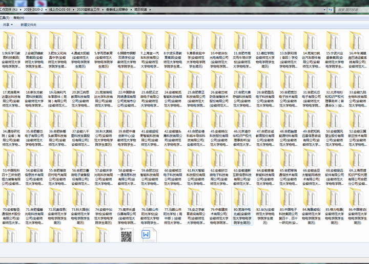 优服务,突出“三个精准”。毕业班工作“面对面”到“键对键”的变化,要求就业服务更“精准”。精准掌握就业意向,毕业班辅导员收集学生就业目标区域、心仪岗位、期待薪资,获取招聘信息后先筛选再“私信”推送。精准把关求职材料,学生就业简历“作业上交”、“逐一批阅”、“修改反馈”;本次招聘会创新采取“简历集中投递为主、自主投递为辅”的投递模式,毕业班学生只需在战疫征集令微信推送中回复本人报名企业,由班级统一组织简历投递,充分调动学生的积极性,同时提高用人单位审核、录用效率。精准帮扶“困难群体”,对建档立卡贫困家庭、身体残疾、无法按期毕业的学生,建立“一人一策”,实现全方位帮扶。